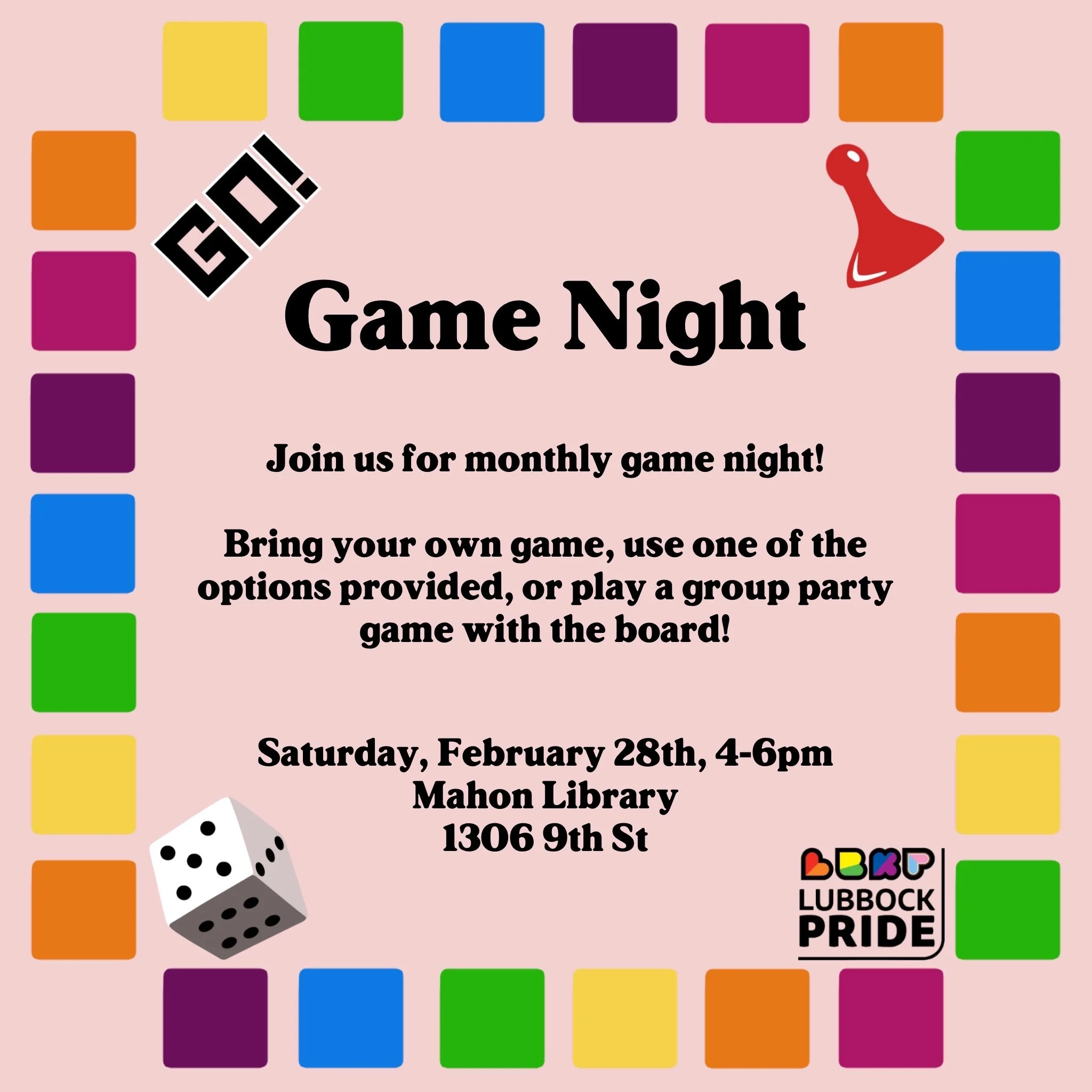 Join some local LGBTQ+ community members for an afternoon of board games and comradery! Bring your own game to share with others, play a game provided by LubbockPRIDE, or come to join in on another group. We just got Herd Mentality to share! And we have other games like Tapple and Cards Against Humanity.